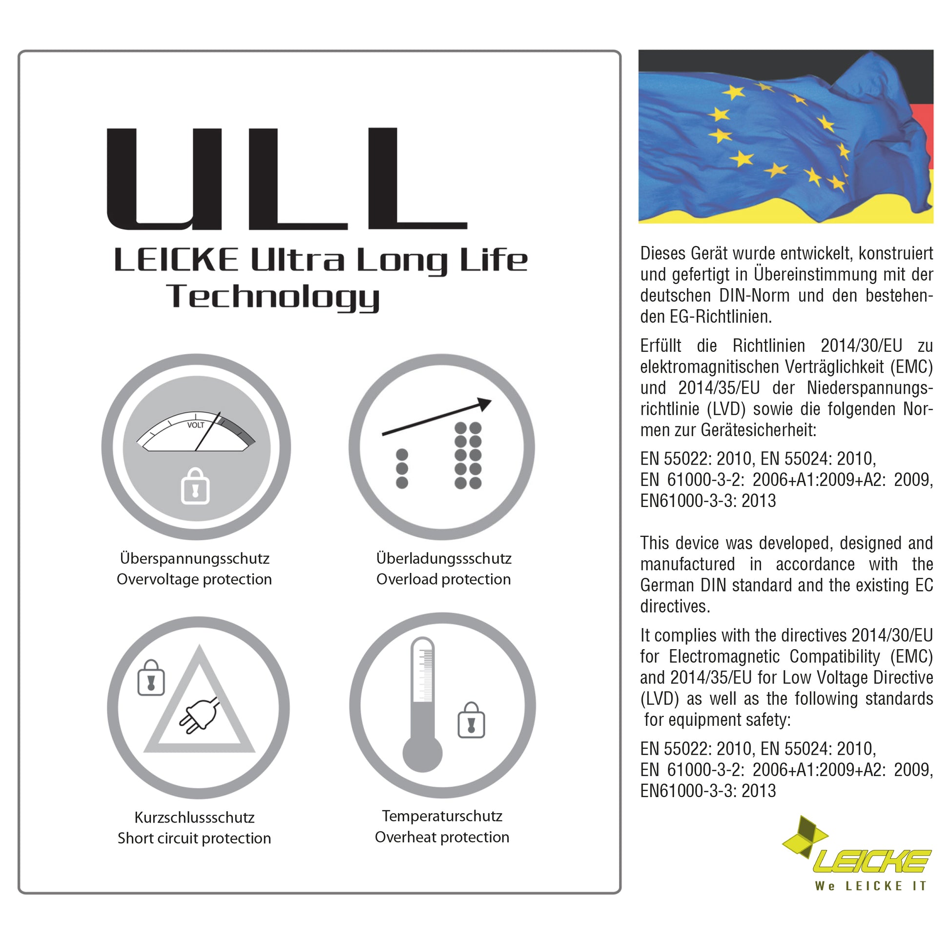 • LEICKE ULL technology: All LEICKE Eco power supplies are equipped with LEICKE Ultra-Long-Life technology (ULL)