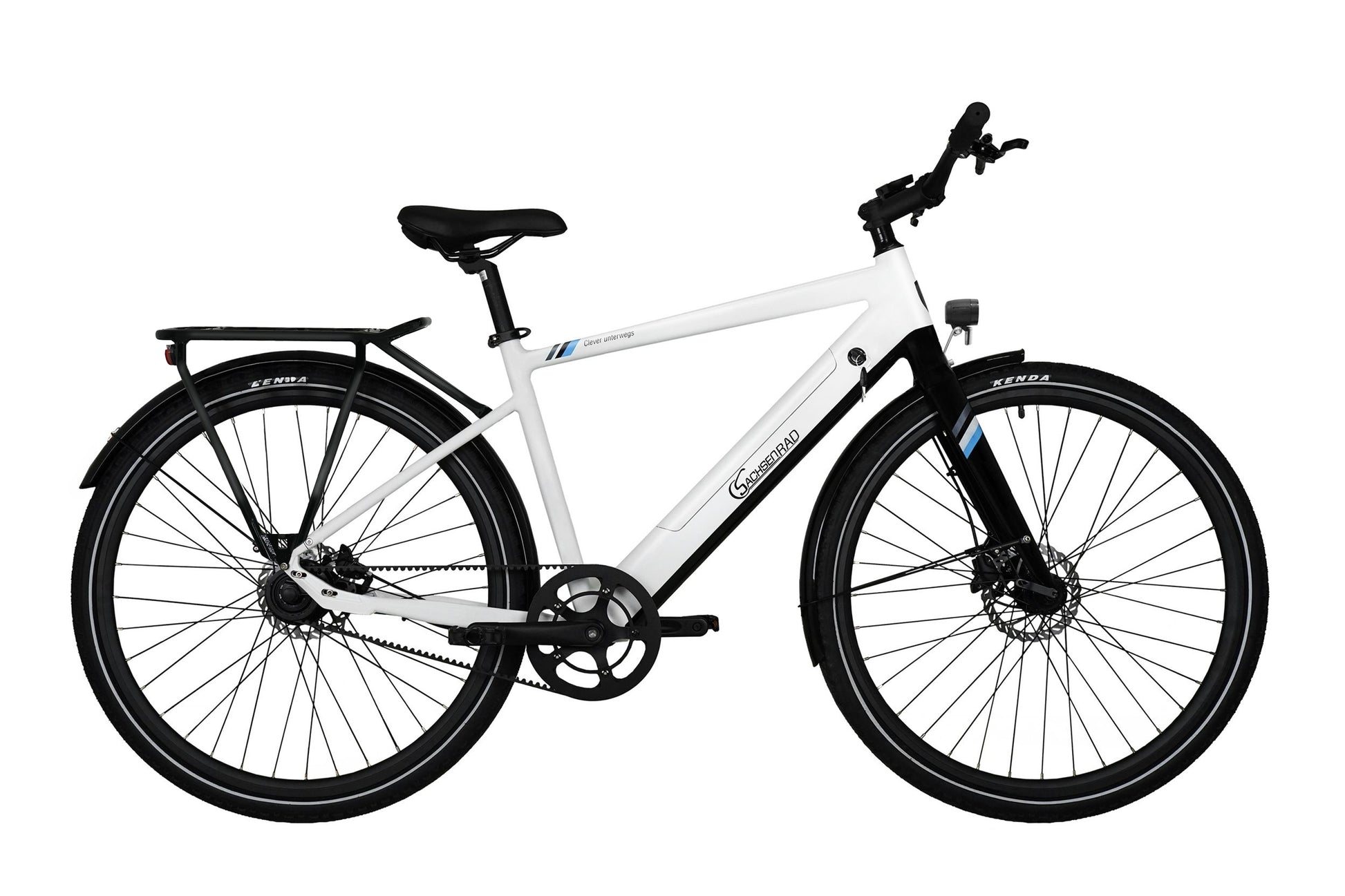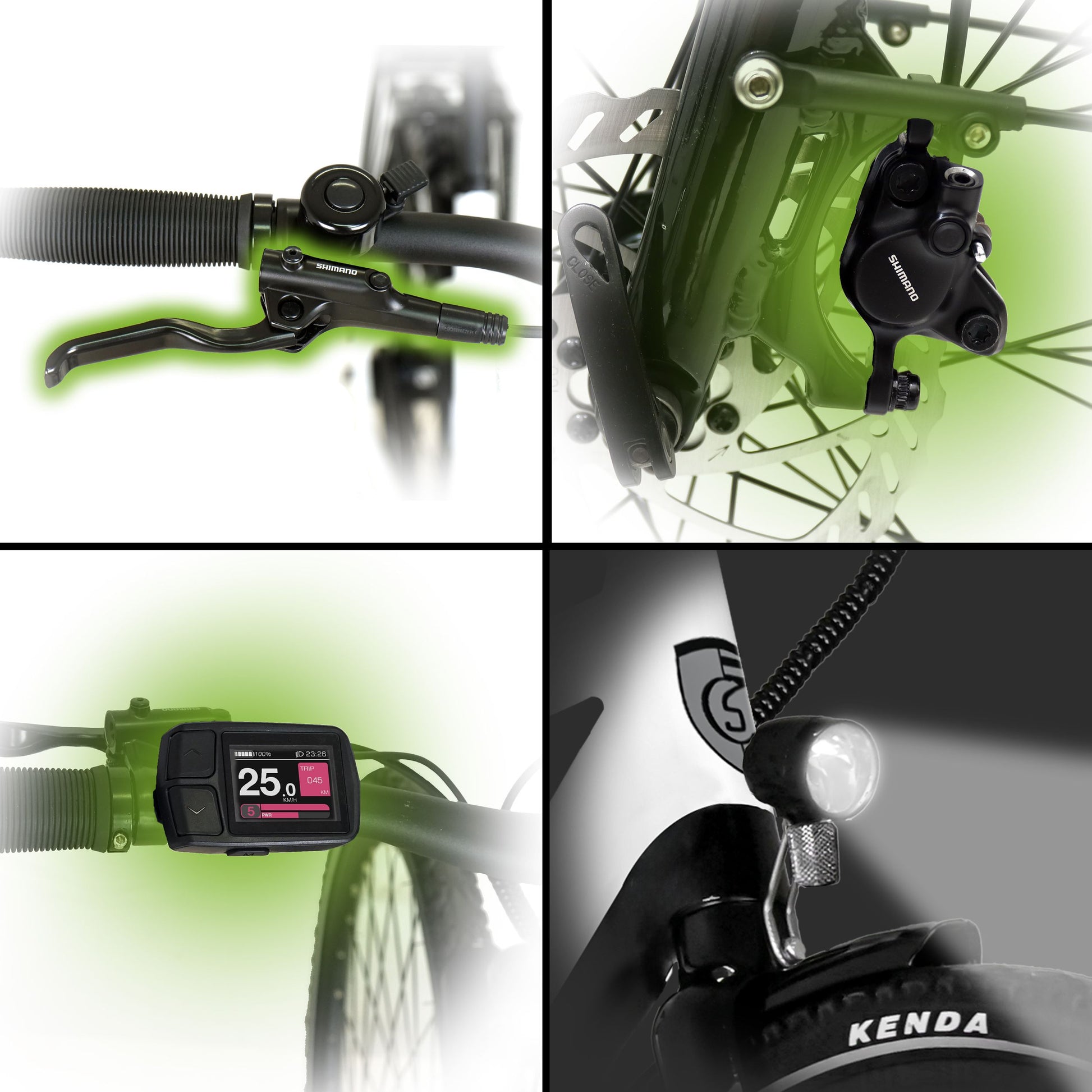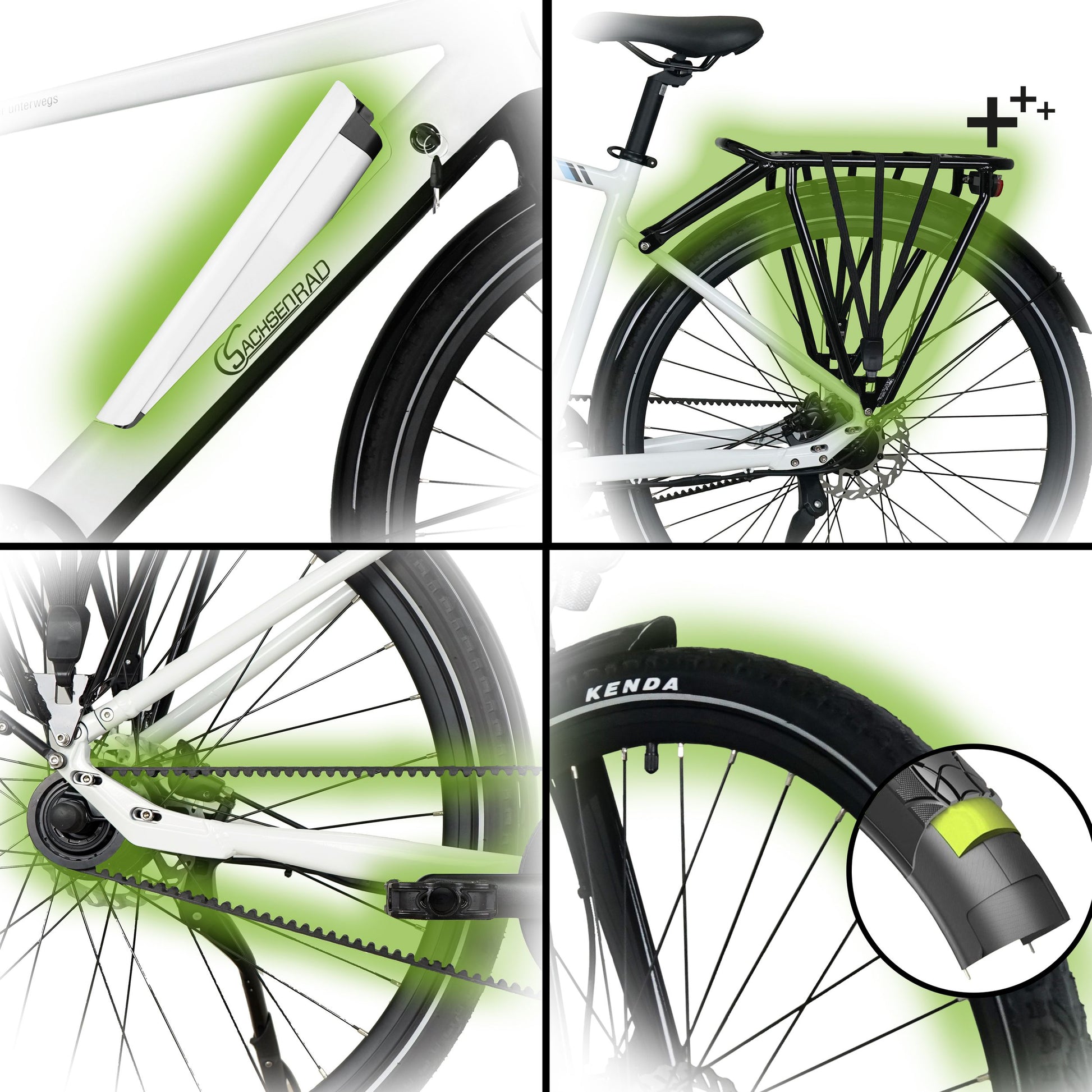LCD-Steuerdisplay, Fahrmodus Pedelec, Riemenantrieb, LED-Beleuchtung mit StVZO-Zertifizierung, Rücklicht, Klingel und Gepäckträger