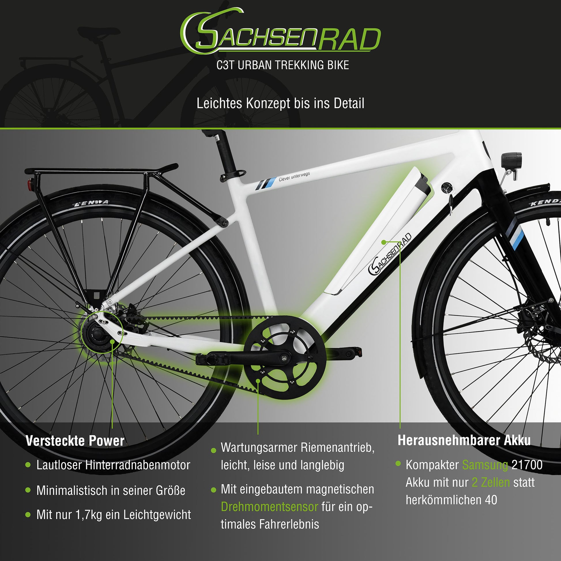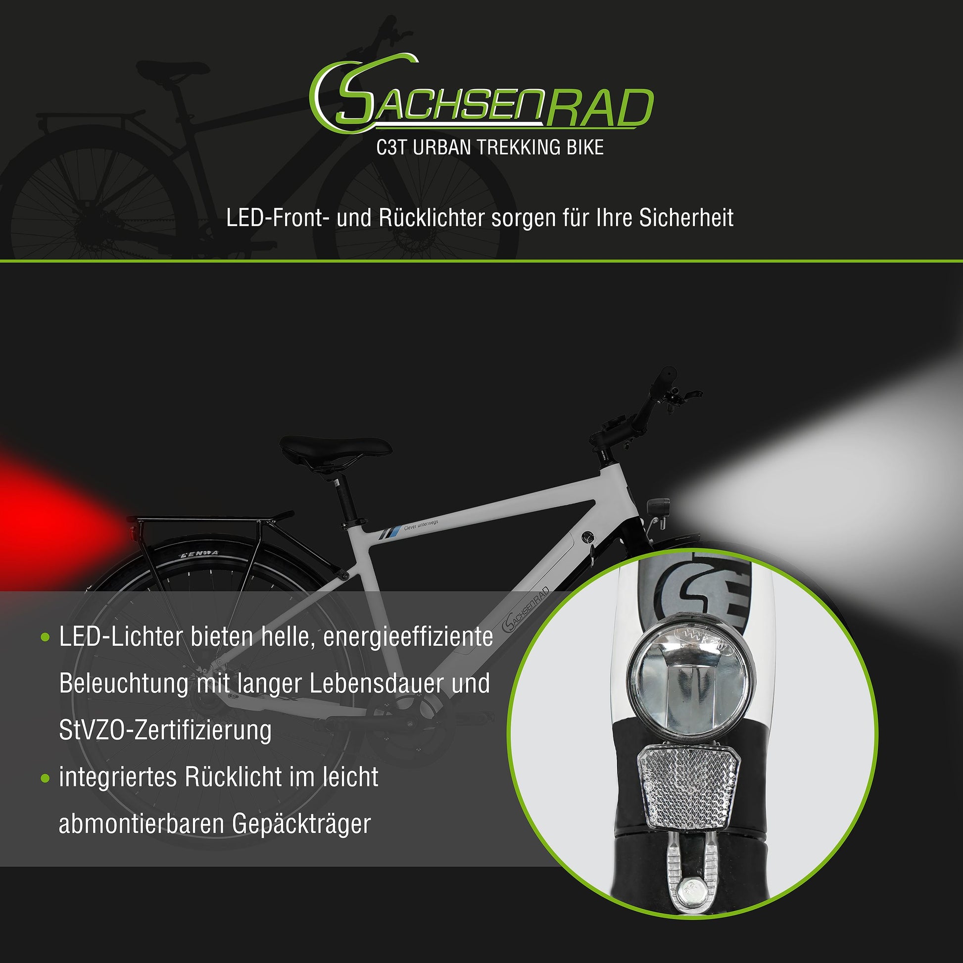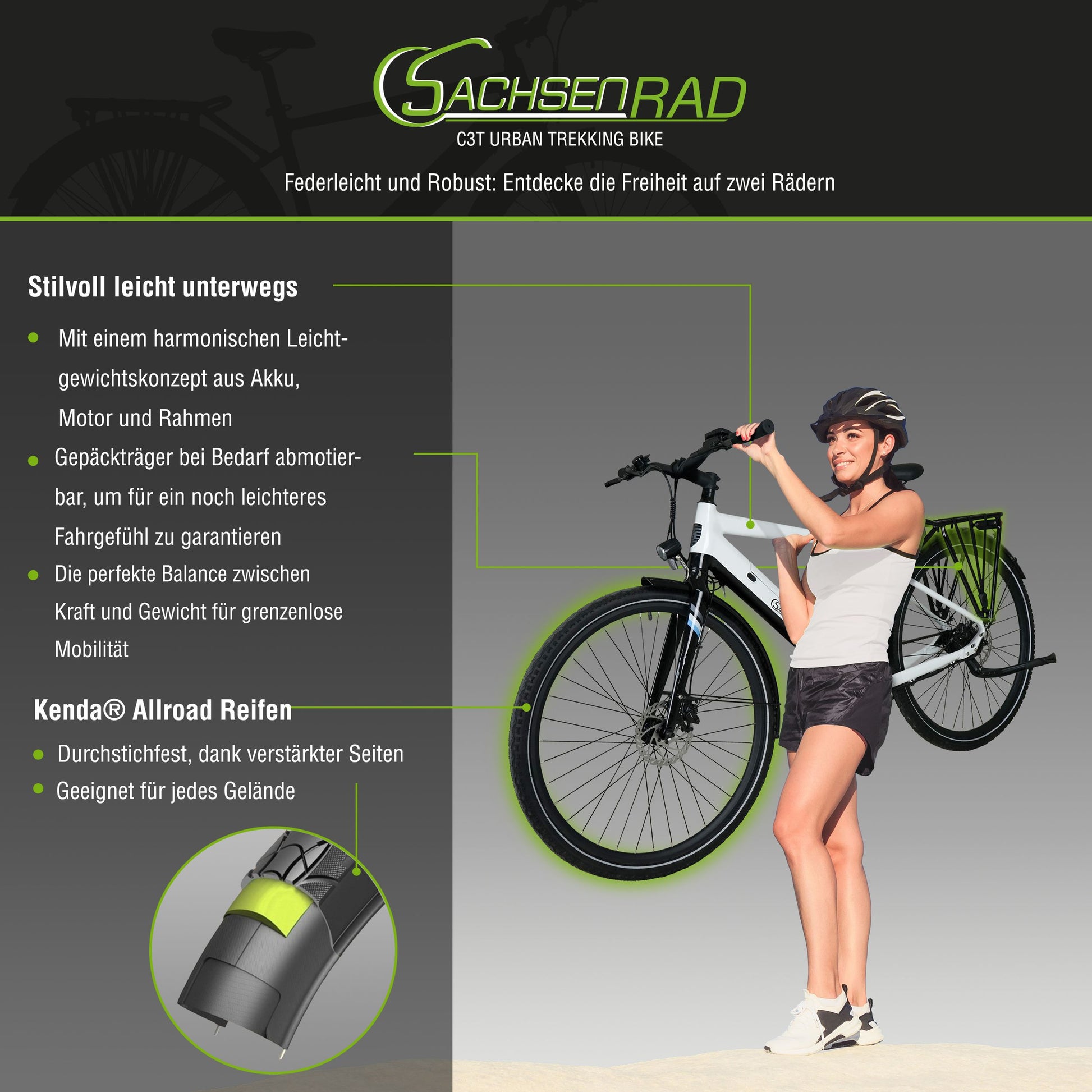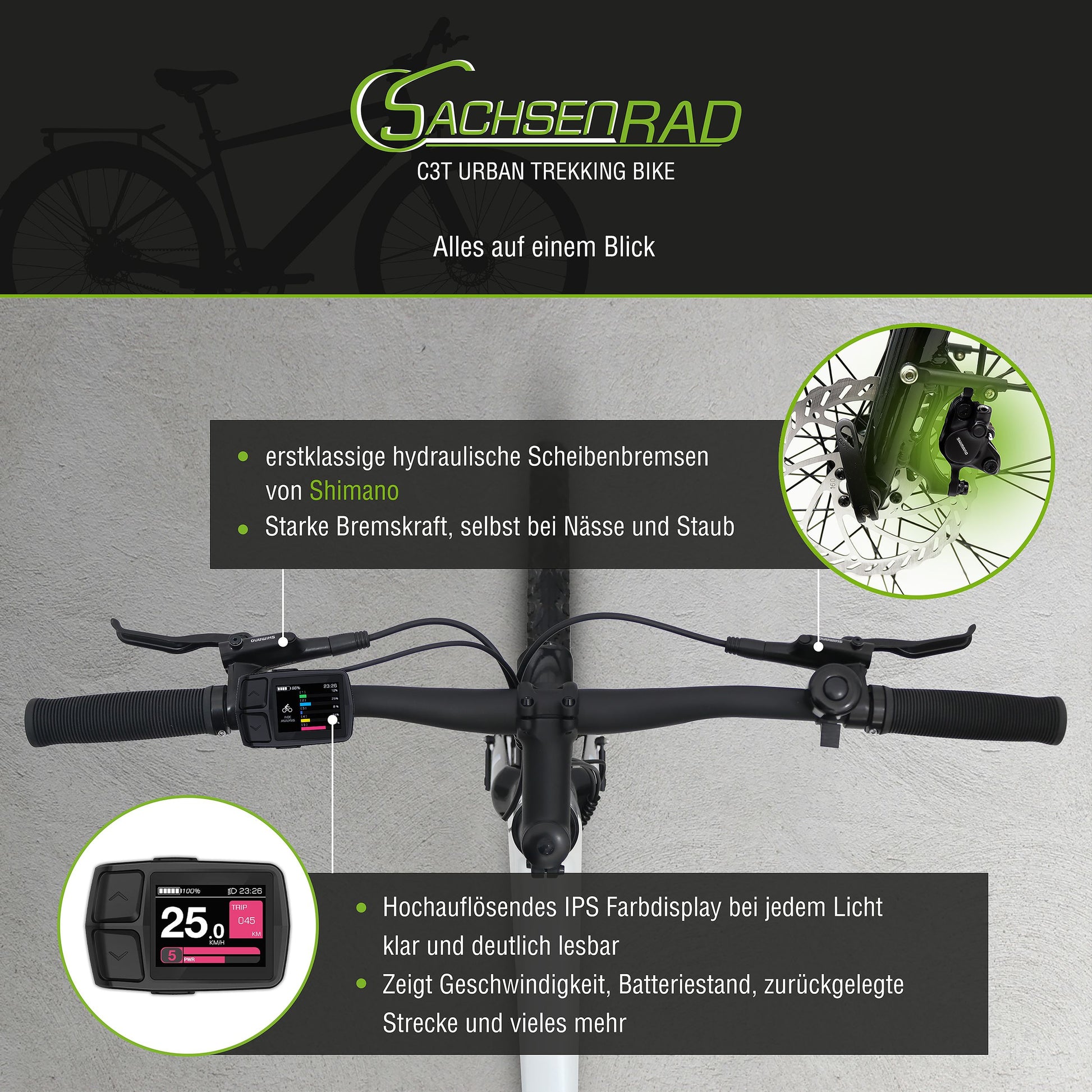 Steigern Sie Ihr Fahrerlebnis auf ein neues Level mit dem SachsenRAD Urban Trekking E-Bike C3T – wo die Verbindung von Robustheit, Leichtigkeit und Raffinesse im Mittelpunkt steht.