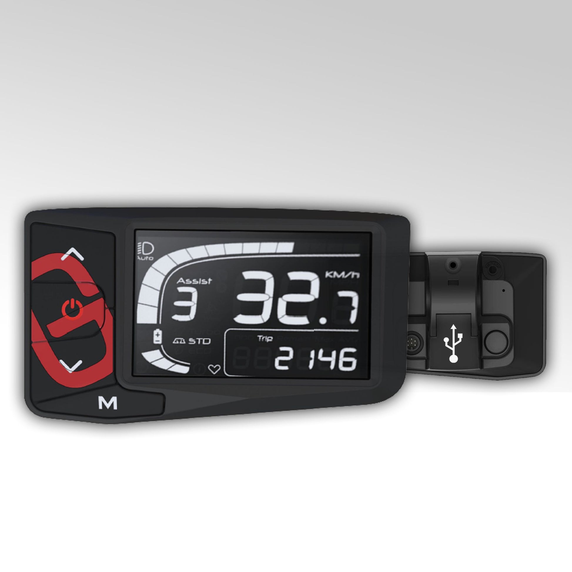 LCD-Display mit Anzeige von Batteriestand, Unterstützungsstufen,