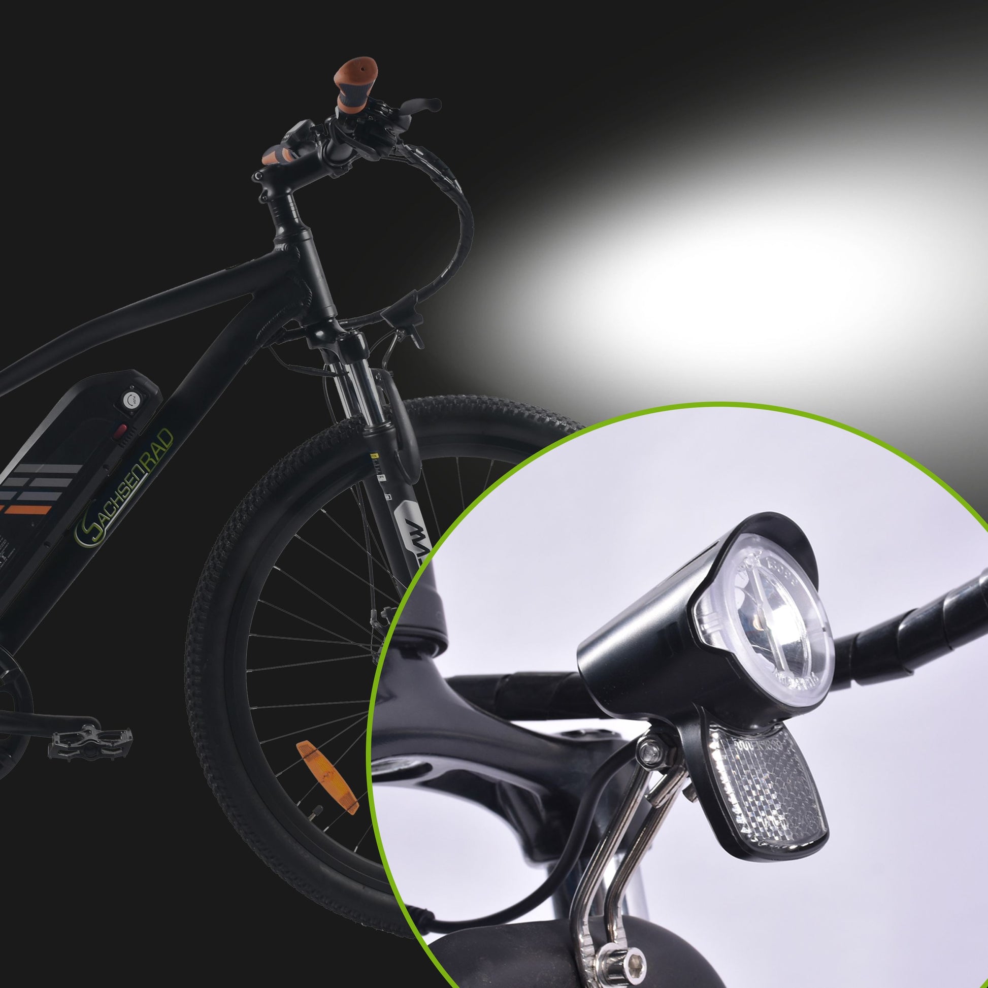 gute Beleuchtung sorgt das eingebaute stromsparende LED-Front- und Rücklicht. Ein elektrischer Sensor führt zu einer