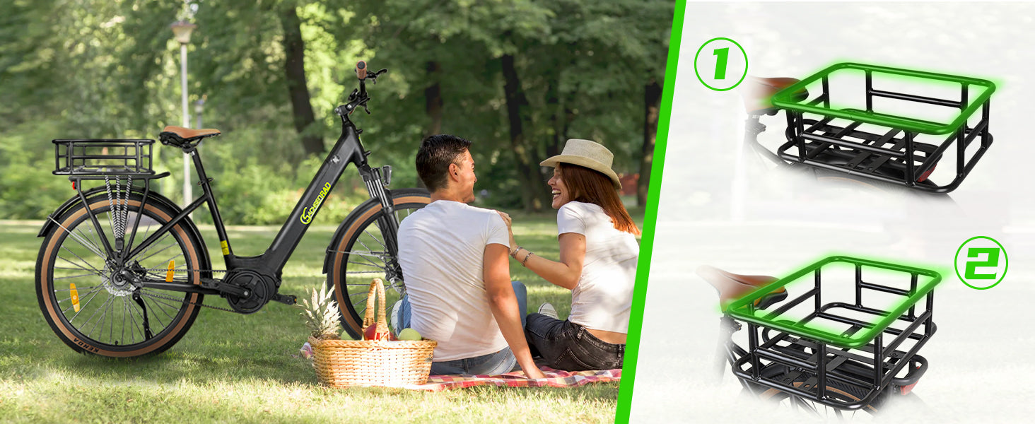 horizontal oder vertikale montage auf Gepäckträger, geeignet für Freizeit, Einkauf und Transport