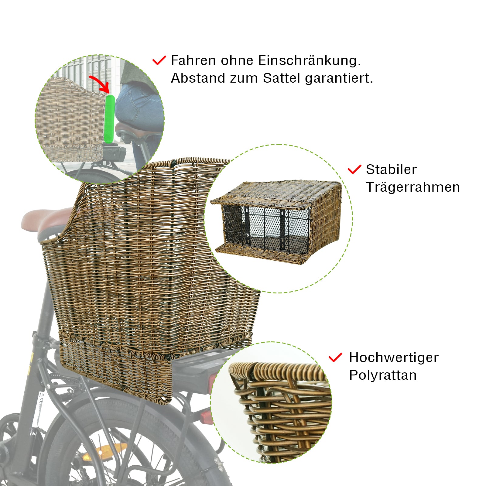 Der 20L Fahrradkorb für den Gepäckträger besteht aus hochwertigem, wasserdichtem Polyrattan, das handgeflochten ist. Es ist leicht, langlebig und widerstandsfähig gegenüber verschiedenen Wetterbedingungen – bricht oder reißt nicht und ist rostfrei.