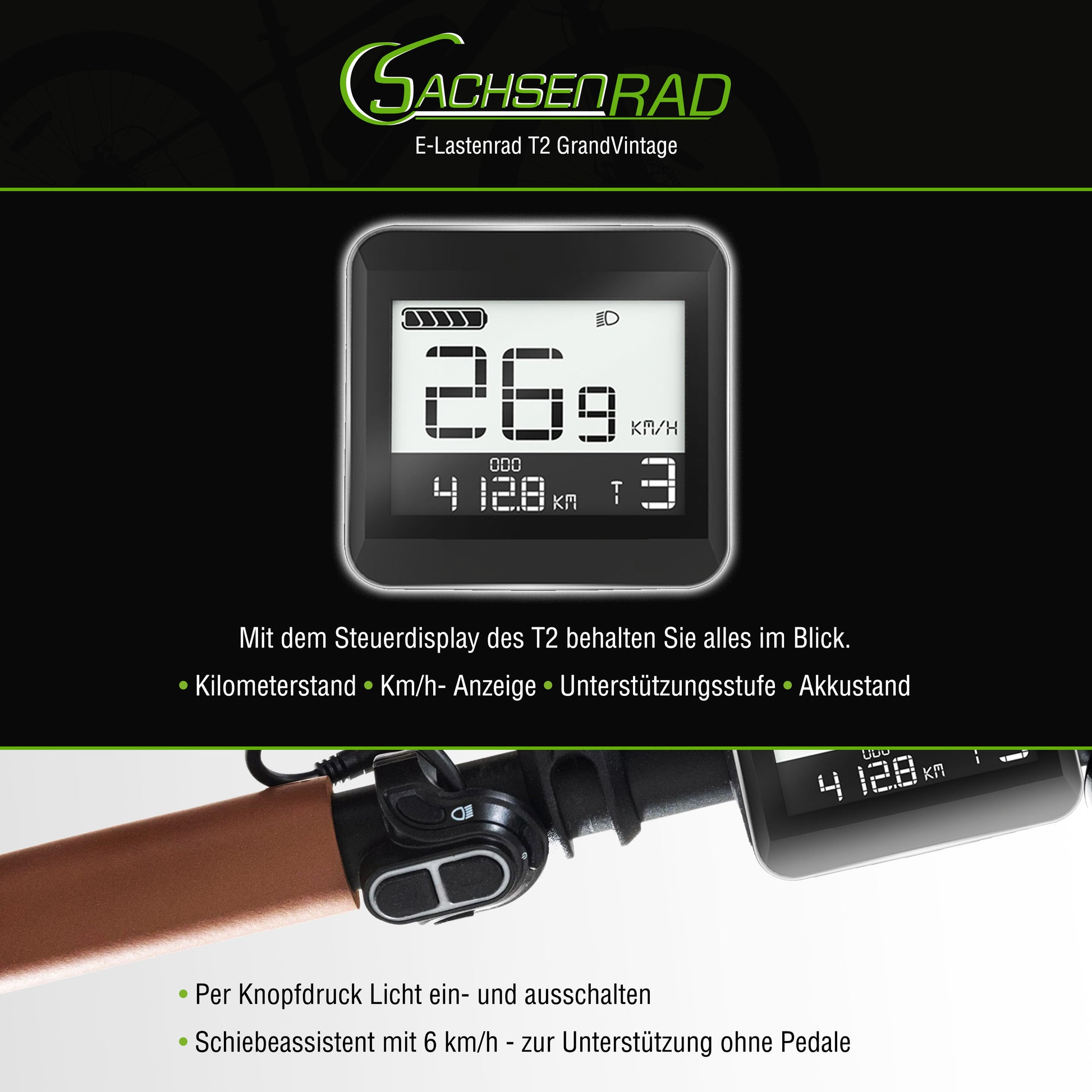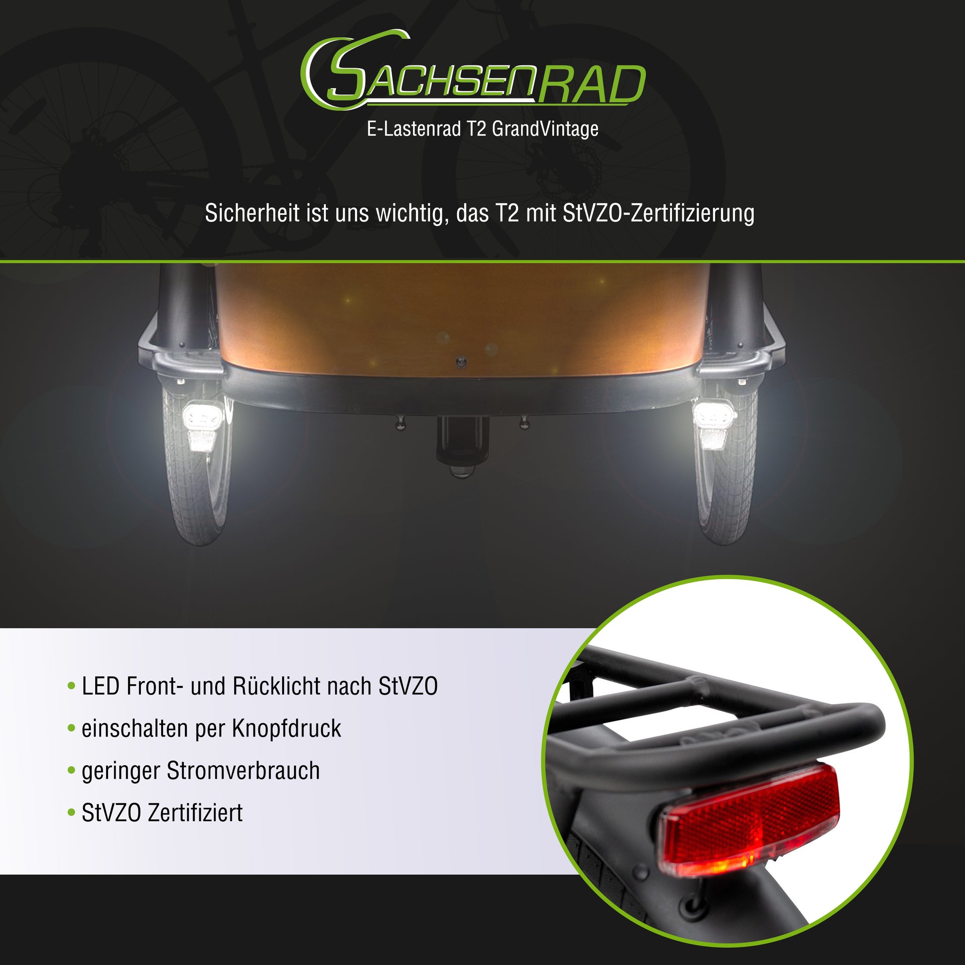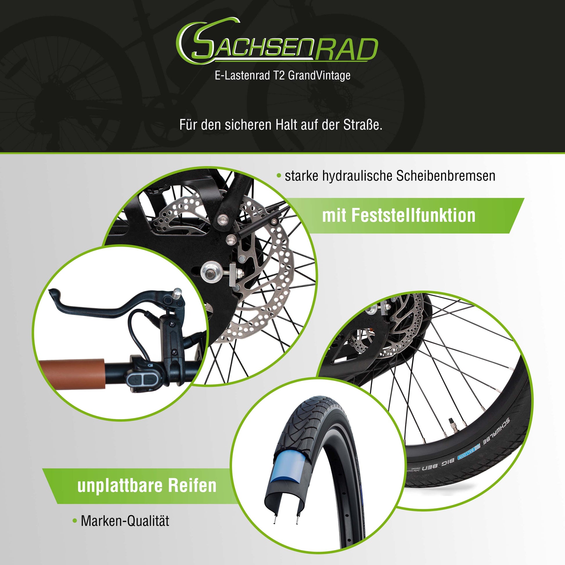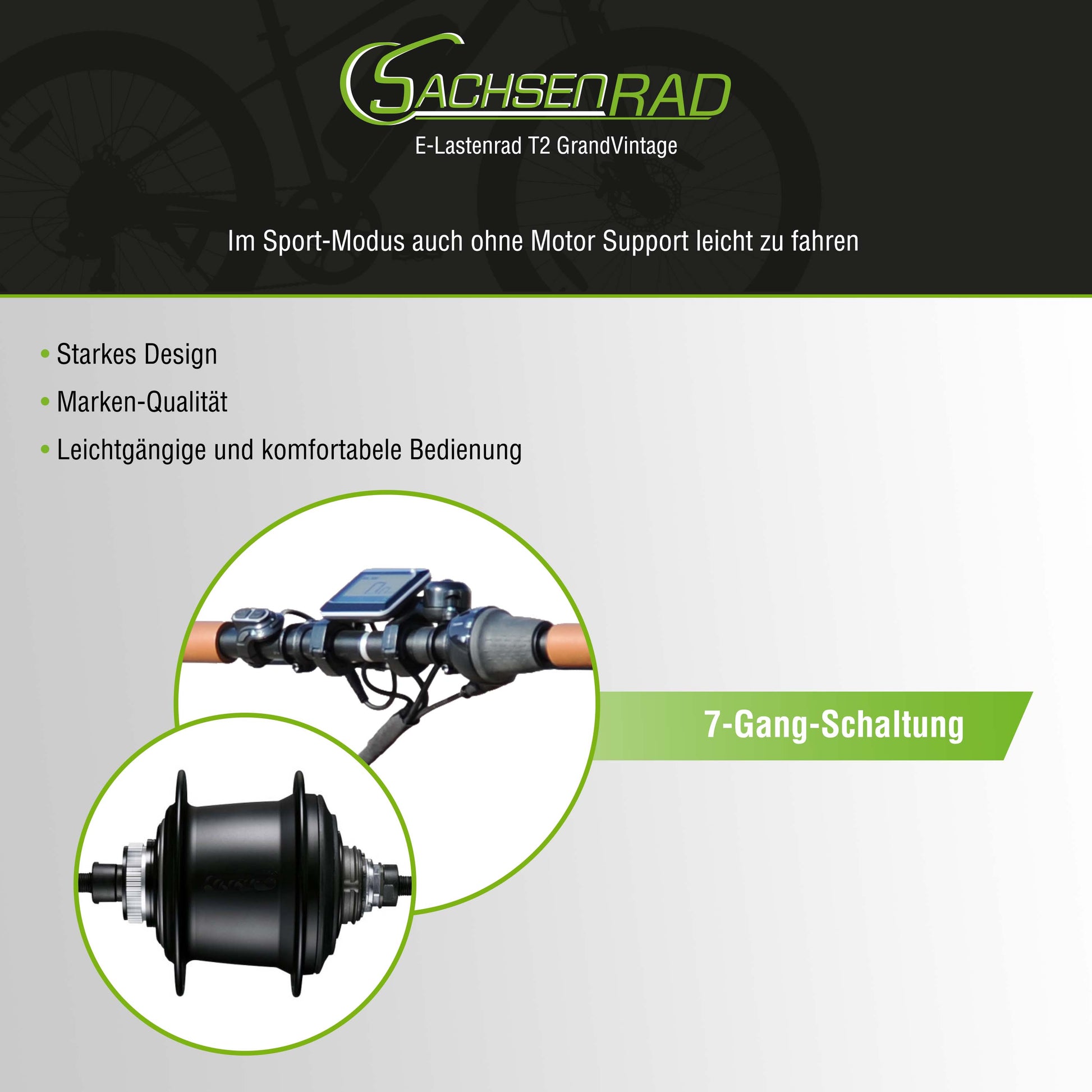 Das SachsenRAD T2 Grand Vintage bringt Sie und Ihre Kinder spielend einfach, sicher und schnell von A nach B. Unser Lastenrad ist der optimale und preisgünstige PkW-Ersatz in der Stadt.