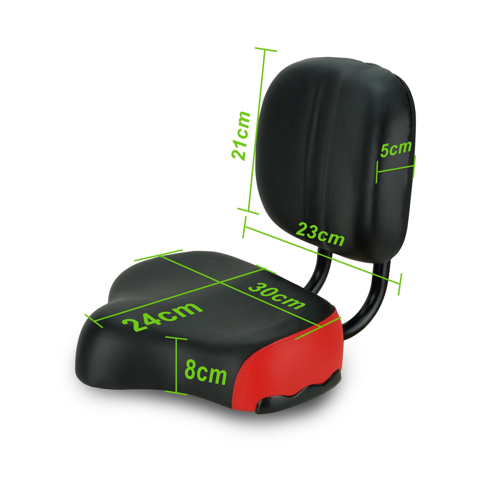 Der hochwertiger Fahrradsattel mit verstellbarer Rückenlehne sorgt für maximalen Komfort auf langen Fahrten. Die Höhe der Rückenlehne lässt sich individuell anpassen, um eine ergonomische Sitzposition zu ermöglichen. Die extra breite Sitzfläche ist besonders weich, atmungsaktiv und sorgt für ein angenehmes Fahrgefühl, ohne Druckstellen oder Beschwerden. Für zusätzlichen Komfort sorgen dicker Memory-Schaum und stoßabsorbierende Gummifedern, die Erschütterungen auf unebenen Straßen abfedern. Ein spezielles Hohlraum-Design ermöglicht eine bessere Luftzirkulation und verhindert übermäßiges Schwitzen.