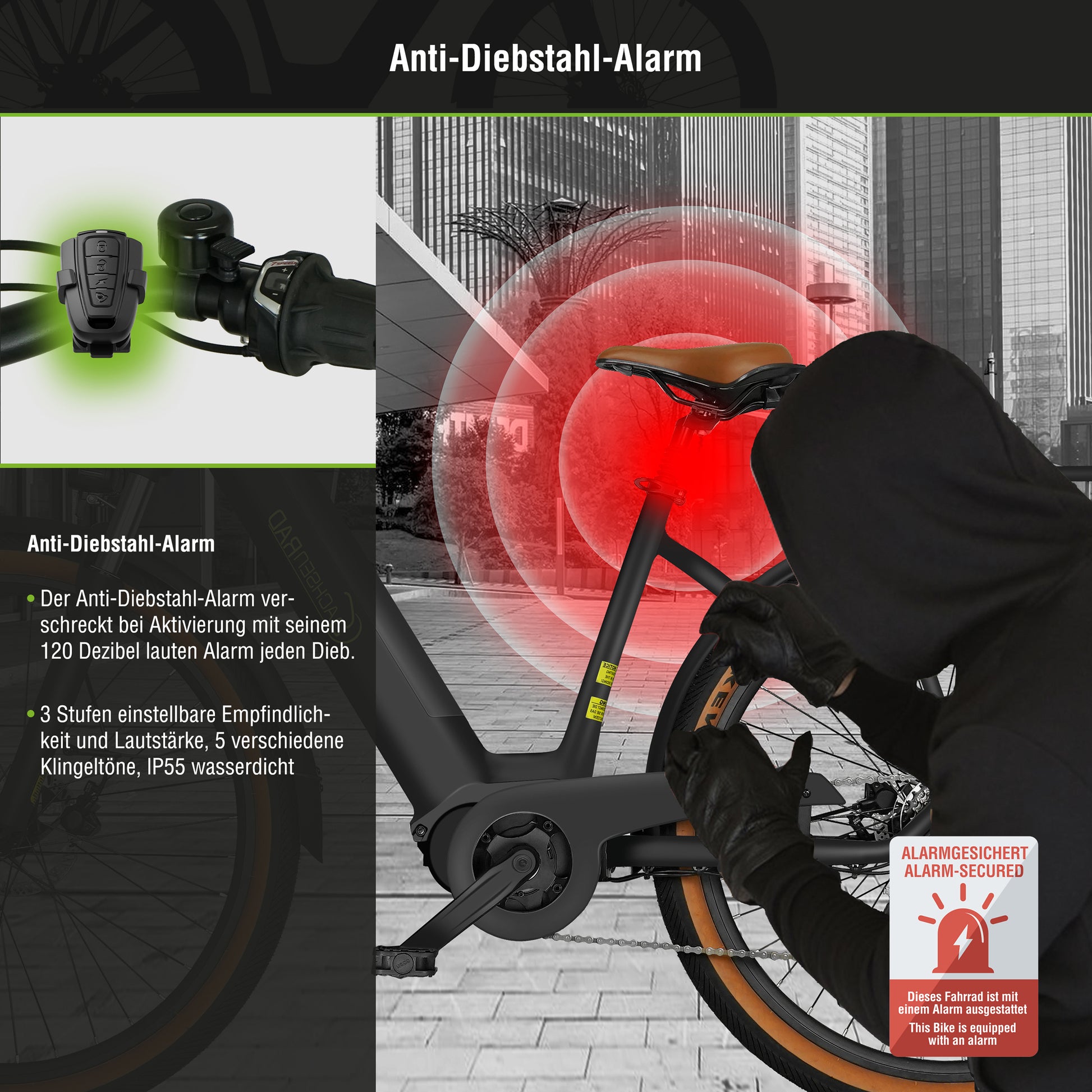 Dieses SachsenRad kann man auch ohne E Unterstützung geschmeidig fahren. Diebstahlschutz durch die Alarmanlage (inklusive) ist ein Highlight. Man sieht ihm schon die solide Verarbeitung an!!